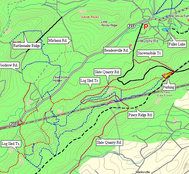 Take the Snowmobile Trail to the top where it meets Piney Ridge