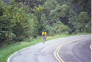 Joe Kaehler prior to the beginning of his 105 mile ride on Skyline Drive in Virginia. Photo was taken on September 2, 2000 just inside the North Entrance near Front Royal, Virginia.